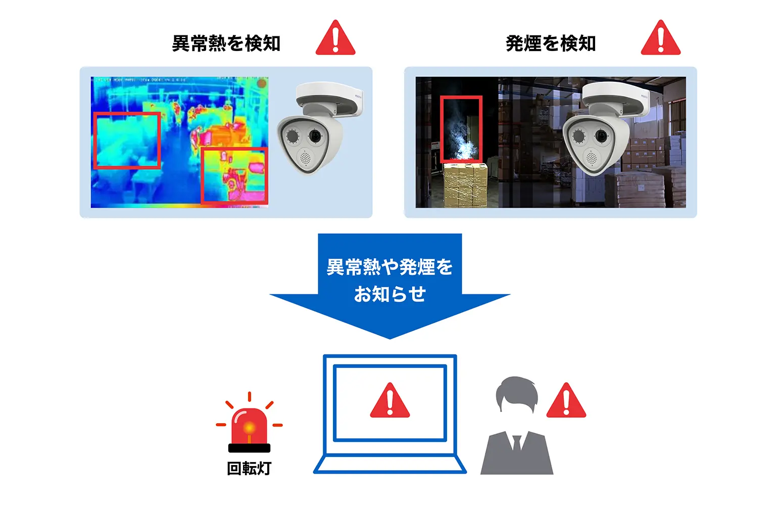 • 異常熱や発煙を即座に検知