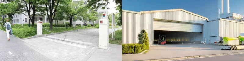 MOBOTIXによる「出庫警報システム」は、エッジAIカメラと回転灯を組み合わせたシステムです。回転灯と組み合わせることで、敷地内外への車両侵入を周辺にわかりやすくお知らせすることができます。工場内へ出入りする車両と歩行者との接触事故の防止に効果的で、地域の皆様や取引業者様、従業員の安心安全の見守りに活用されています。